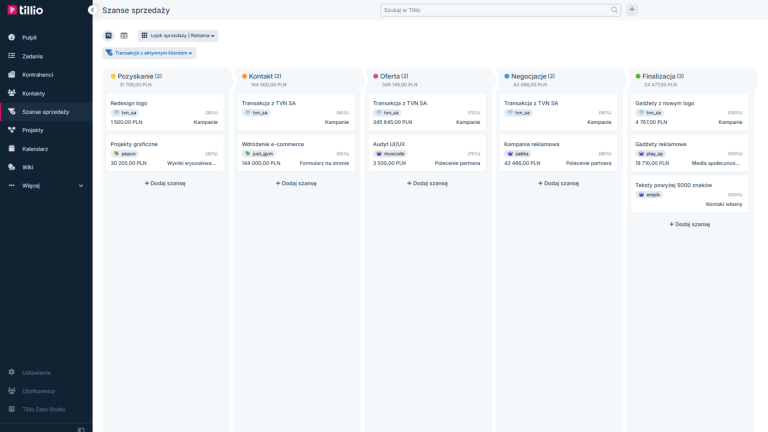 Tillio to polski system CRM zaprojektowany jako jedno środowisko pracy zespołów, które obejmuje sprzedaż, obsługę klientów i realizację, co sprawia, że jest rozwiązaniem oferującym „więcej niż CRM”. Został zaprojektowany tak, aby firmy mogły pracować na wspólnych danych i jasno zdefiniowanych procesach, bez konieczności korzystania z wielu narzędzi i ręcznego przekazywania informacji między zespołami.