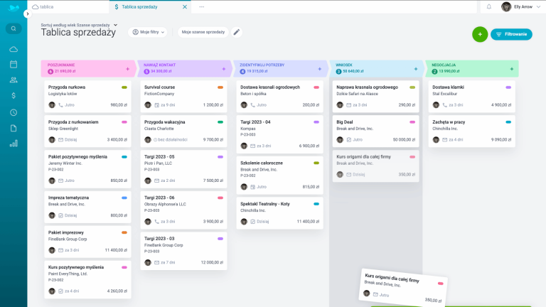 • Pipeline sprzedaży – wizualny lejek ułatwiający zarządzanie szansami i priorytetami