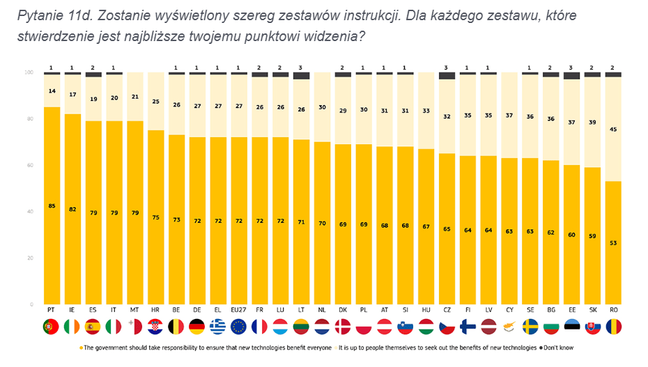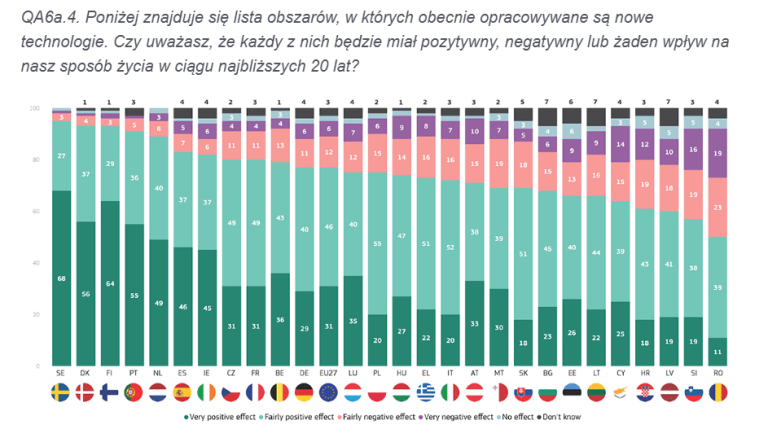 Badanie podkreśla również znaczenie zaufania i sprawiedliwości w nauce. 77% respondentów uważa, że nauka i technologia powinny uwzględniać potrzeby wszystkich grup społecznych przy opracowywaniu nowych rozwiązań i produktów. Dodatkowo, 72% respondentów twierdzi, że rząd powinien zapewnić, aby nowe technologie przynosiły korzyści wszystkim obywatelom.