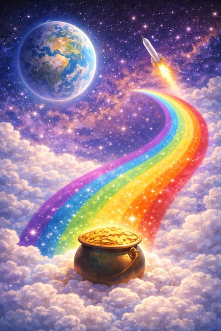 Nie wątpimy, że wszystkim współpracującym z szalenie sympatyczną Magdaleną życzymy takiego garnca złota, jak ten, który autorka omawianego posta sobie radośnie wygenerowała. To będzie w końcu spełnienie Waszych marzeń: garnek złota na pierzastej chmurze, rozciągającej się gdzieś w kosmosie. Na chmurze, do której można dostać się tylko tęczową ścieżką.