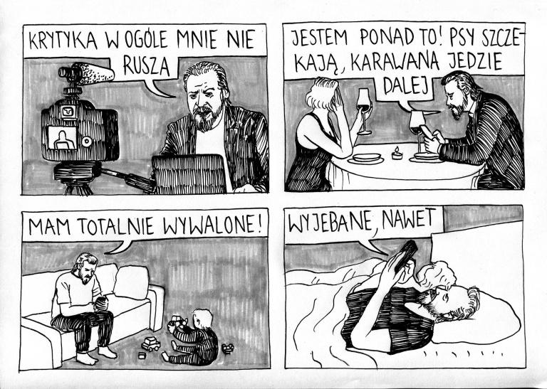 Panie Krzysztofie, pan się nie przejmuje. Pan dalej robi to, co robi, dalej pan reklamuje te batoniki, cateringi, zakłady sportowe. Pan dalej idzie pod prąd, my po prostu potrzebujemy takiego bezkompromisowego dziennikarza. I niech nikt więcej nie odważy się nazywać Pana „chłopskim rozumkiem”, co to „nie doczytał, nie zrozumiał i nie wie”.