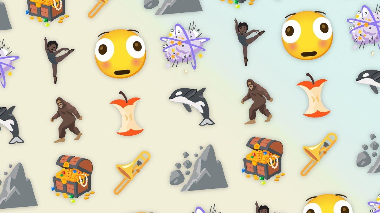 Nowe emoji obejmują puzon, skrzynię skarbów, twarz z wybałuszonymi oczami, chmurę walki, ogryzek jabłka, orkę, baletnicę neutralną płciowo, osuwisko i Wielką Stopę.